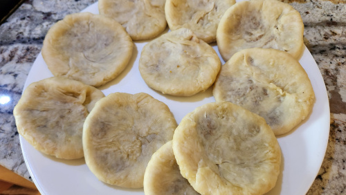 - Flatten the stuffed ball again with the help of fingers – about 2.5 inches in diameter. Make sure that there is no hole and no filling comes out.